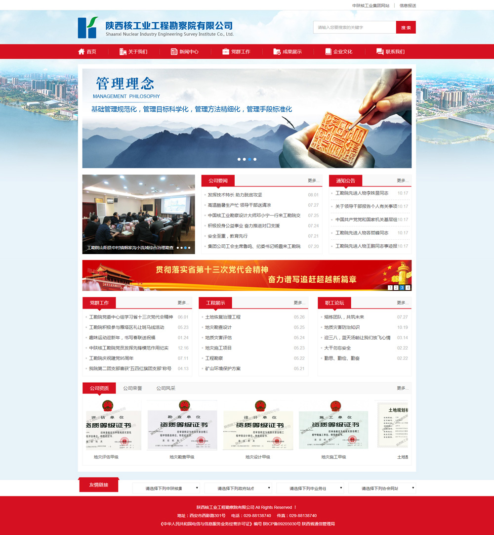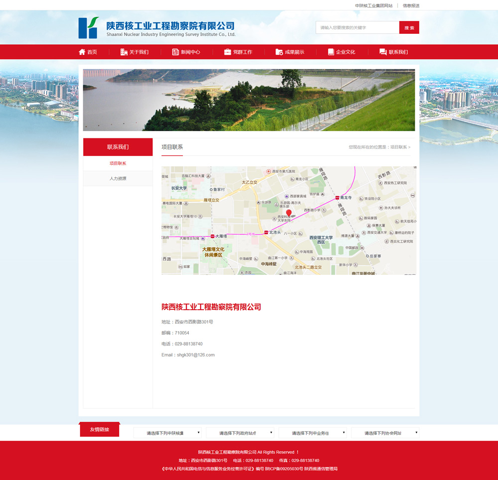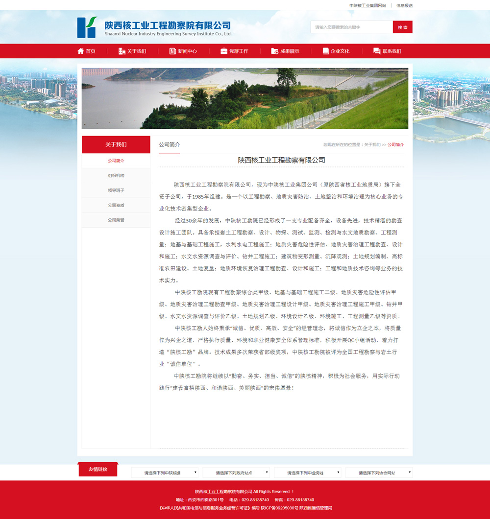 陕西核工业工程勘察院有限公司,现为中陕核工业集团公司(原陕西省核工业地质局)旗下全资子公司,于1985年组建。是一个以工程勘察、地质灾害防治、土地整治和环境治理为核心业务的专业化技术密集型企业。